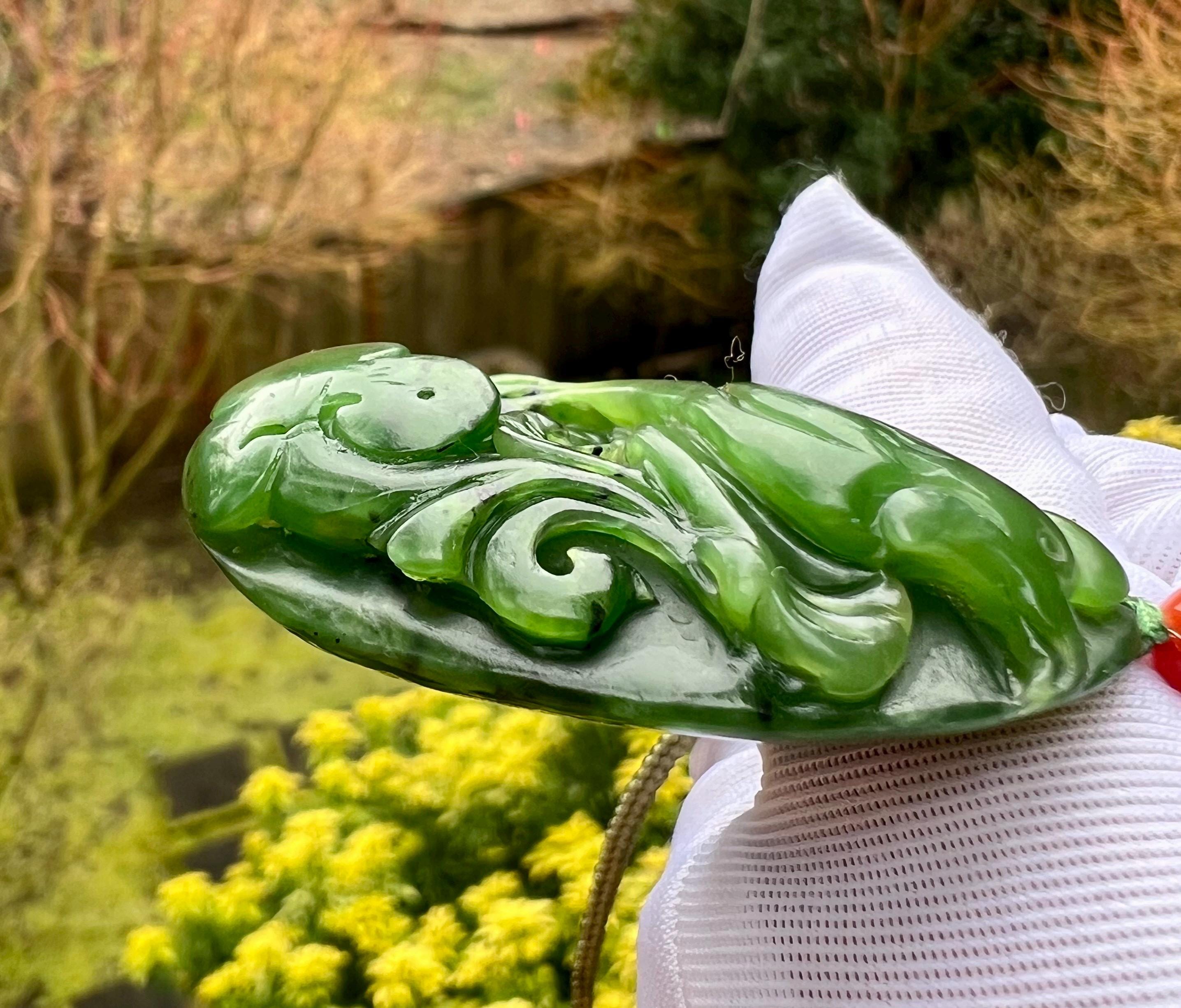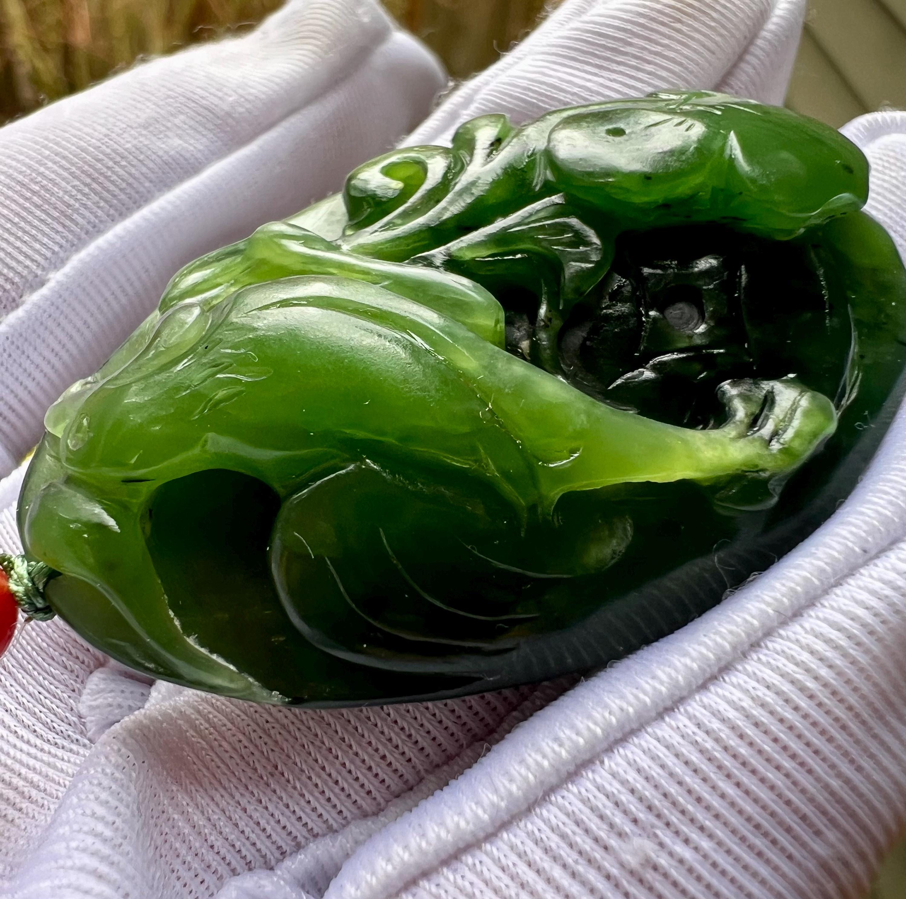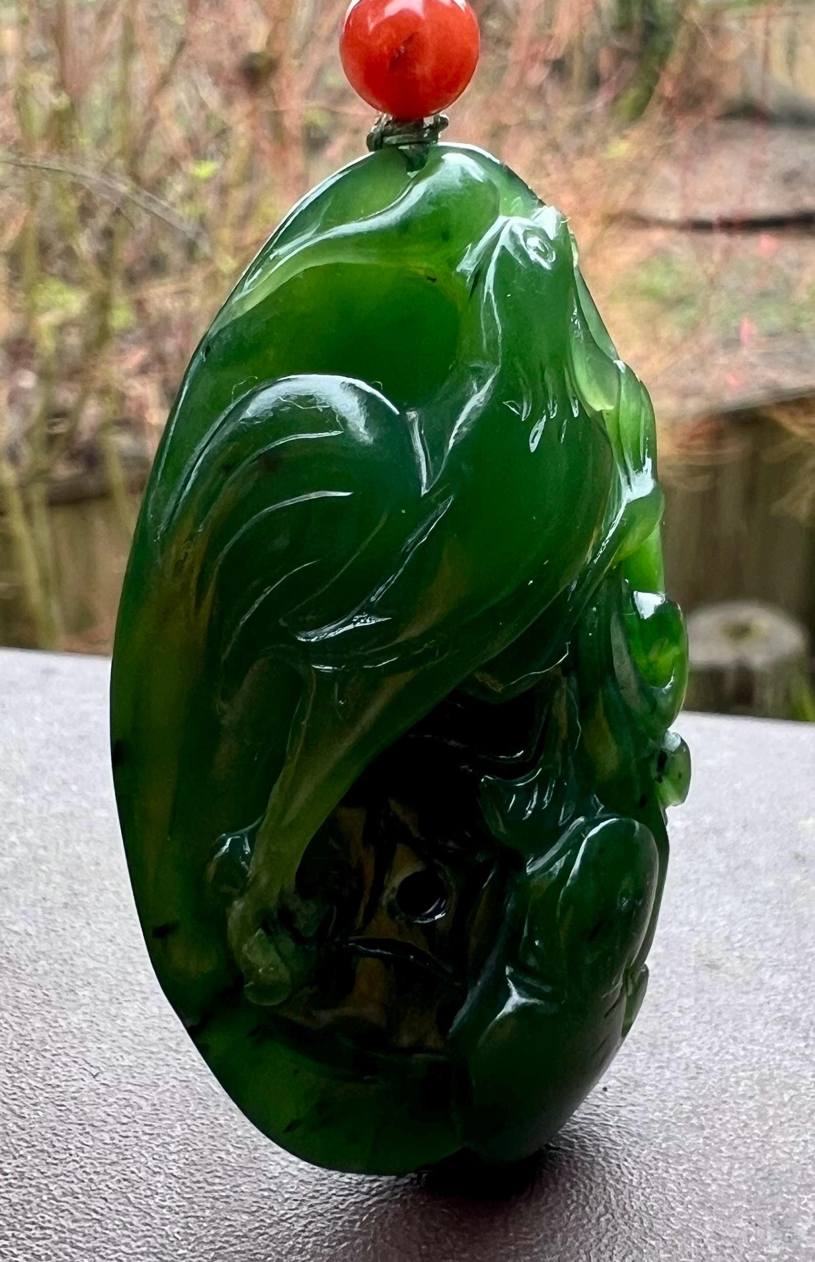 Certified natural nephrite green jade/ green nephrite carved Phoenix and Ruyi pendant necklace 天然碧玉 雕刻凤凰来仪吊坠 手工绳项链 #3970